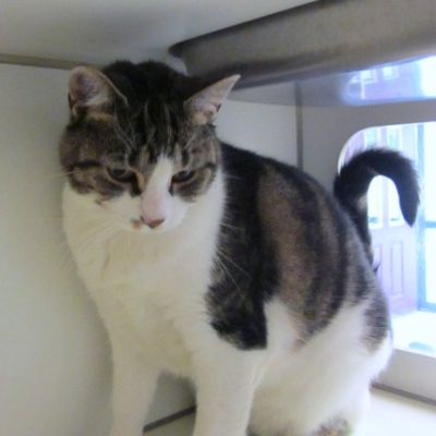Bailee is a 6 year old spayed female brown tiger and white kitty. She came to the shelter because her owner could no longer care for her. She likes dogs but do not like other cats. She is friendly and sometimes vocal. She likes to be picked up and was not raised with children. She loves to play with toys and sit in sunny spots. Bailee is available through our Adult Companion Program to those who qualify.