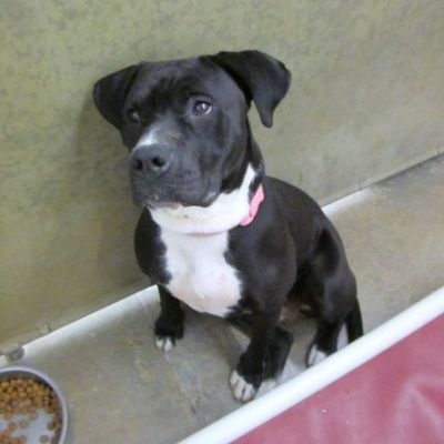 Babygirl is a 1 year old spayed female black and white Boxer/Pitt mix. She came to the shelter because her owner could not have here where they lived. She is a special needs dog because she is deaf. She must meet any resident dog and seems to like cats. She is very protective of her food bowl. She loves to go for walks and enjoys being groomed. Her favorite treat are bones, biscuits and she likes chew toys. Babygirl knows some hand signals commands and is a real sweetheart. Stop by and visit her today