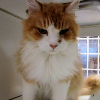 Fluffy is a 13 year old spayed female yellow and white medium long haired kitty. She came to the shelter because her owner was moving. She like some dogs and is learning about cats while she stays with us. She is very sweet and likes to sit in sunny windows. Her favorite food is canned food and her favorite place to sleep is the couch. Fluffy is available through our Adult Companion Program to those who qualify.