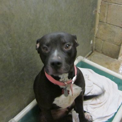 Penny is a 1 1/2 year old spayed female black Pitt mix. She came to the shelter because she wasn’t getting along with the resident dog. She needs a home without small children and she doesn’t like cats. She knows how to sit and is learning how to walk on a leash while she stays with us. Her favorite toys are made of rope. She would benefit from additional training. Please stop by and visit her today.