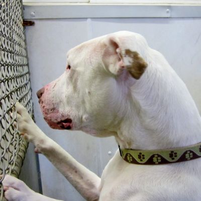 Casper is a 4 year old spayed female white and brown Boxer mix. She came to the shelter because her owner could no longer care for her. She should meet any resident dog and she might chase cats to play with them. She needs a home with older children. She is somewhat leery of strangers and needs a introduction to someone new. Her favorite treats are biscuits. She know to sit, shake her paw and stay. Casper is available through our Adult Companion Program to those who qualify.