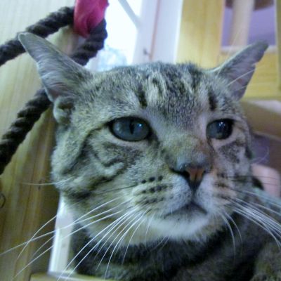 Artie is a 5 year old neutered male short haired brown striped tiger kitty. He came to the shelter as a stray. He likes other cats and is learning about dogs while he stays with us. He has the sweetest disposition and loves hanging out on one of our many cat tree. He would most likely to well in almost any home. He likes to play with toys, but is content just sitting around and watching everything. He seems to be the type of cat that would hangout with you while to read a book or curled up on the couch when you are watching a movie. Artie is available through our Adult Companion Program to those who qualify.