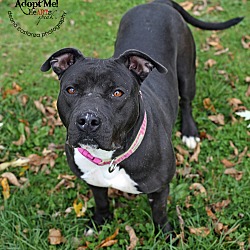 Jewel is a 5 year old spayed female black and white Pitt  Bull mix. She came to the shelter as a stray. She needs a home without cats and no children. She can be shy around some men and should meet any resident dog. She loves to go for walks and know how to sit. She loves treats and playing with toys. Stop by and take her for a walks. Jewel is available through our Adult Companion Program to those who qualify.